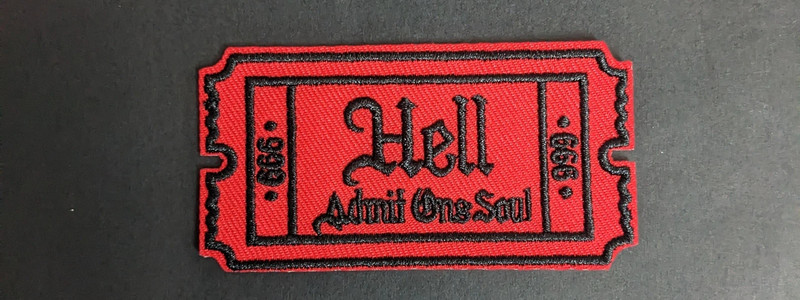 Approx 8.26cm/3.25in x 4.45cm/1.75in Iron-On/Sew-On #patch #hell